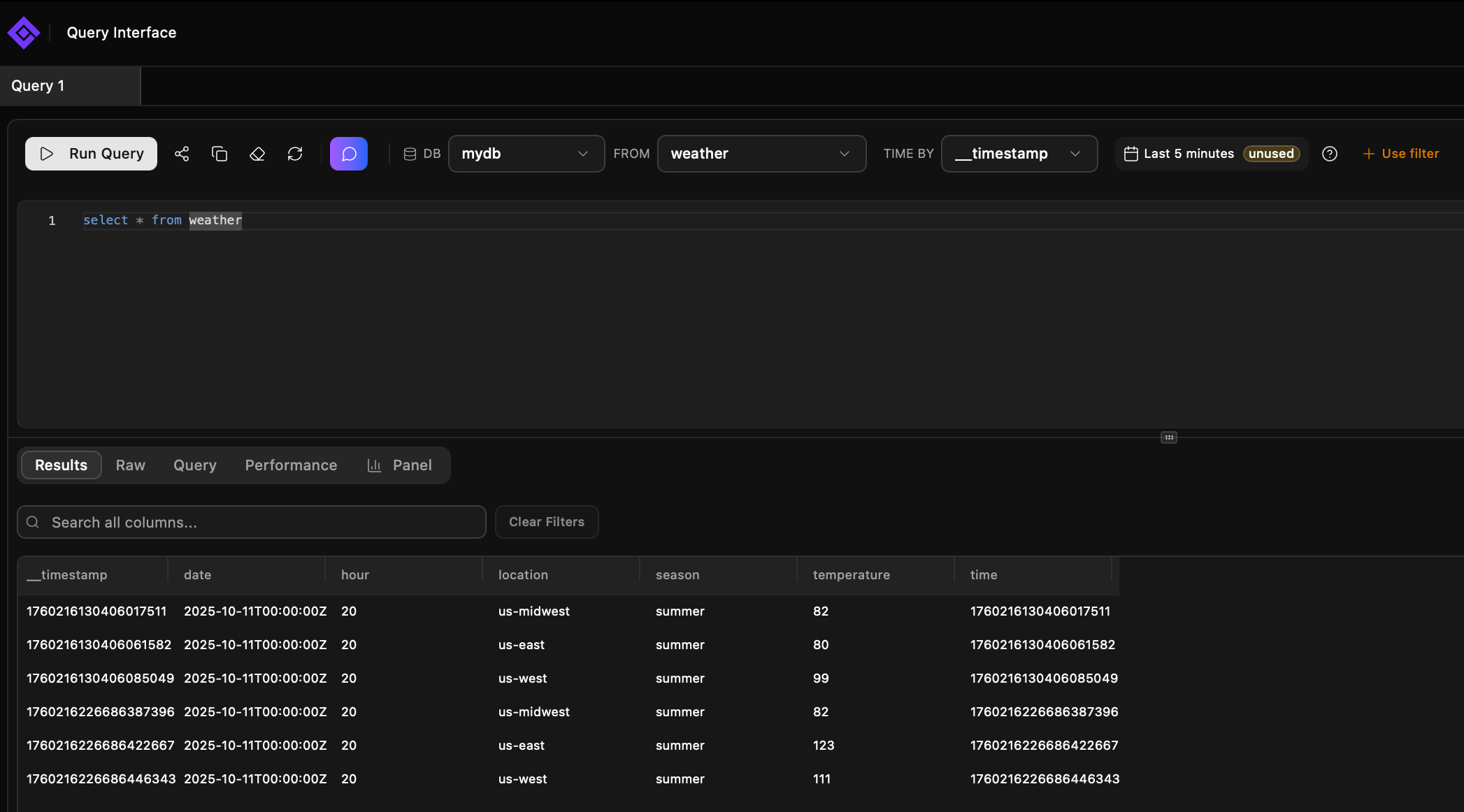 weather,location=us-west,season=summer temperature=111