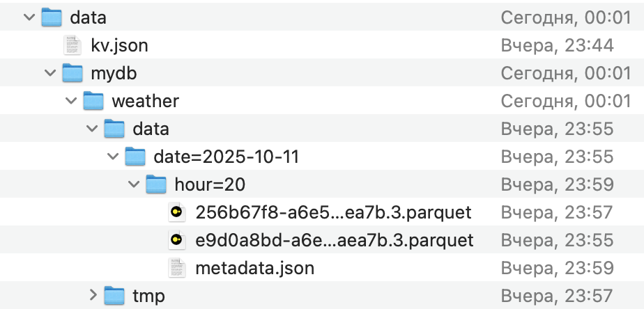 - Идеология: “Оркестратор и оптимизатор”. GigAPI фокусируется на промышленной эксплуатации и автоматизации рутинных задач. Его микросервисы (`merge`, `move`, `drop`) следят за здоровьем хранилища: уплотняют мелкие файлы, перемещают старые данные в дешевое S3-хранилище и удаляют их по истечении срока жизни (TTL).