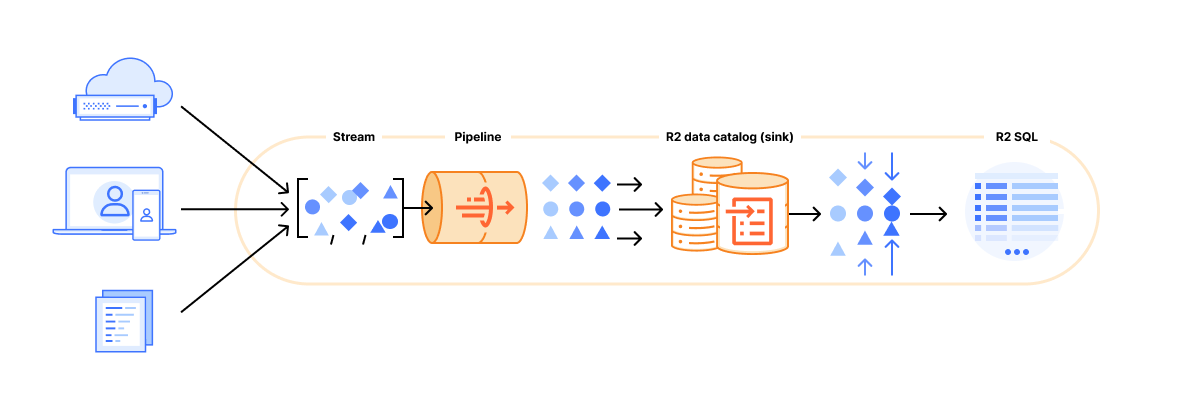 Если вы готовы начать прямо сейчас, следуйте нашему руководству по Платформе данных для пошагового создания конвейера, который обрабатывает события и доставляет их в таблицу R2 Data Catalog, к которой затем можно будет делать запросы с помощью R2 SQL.
